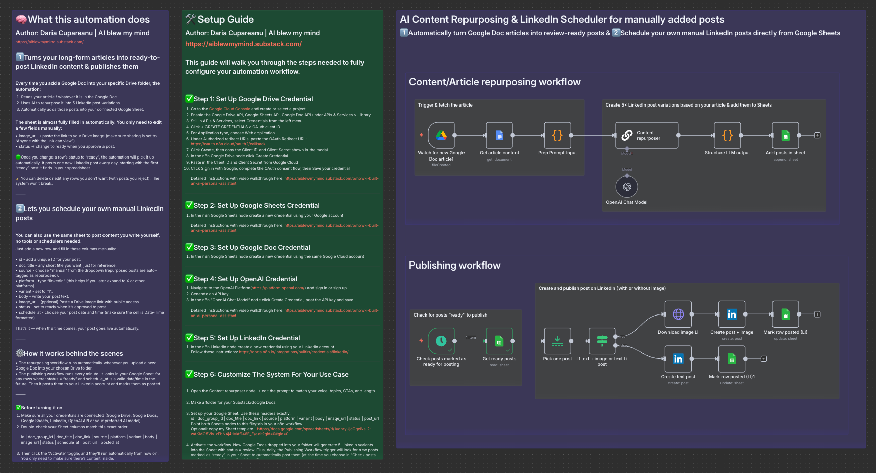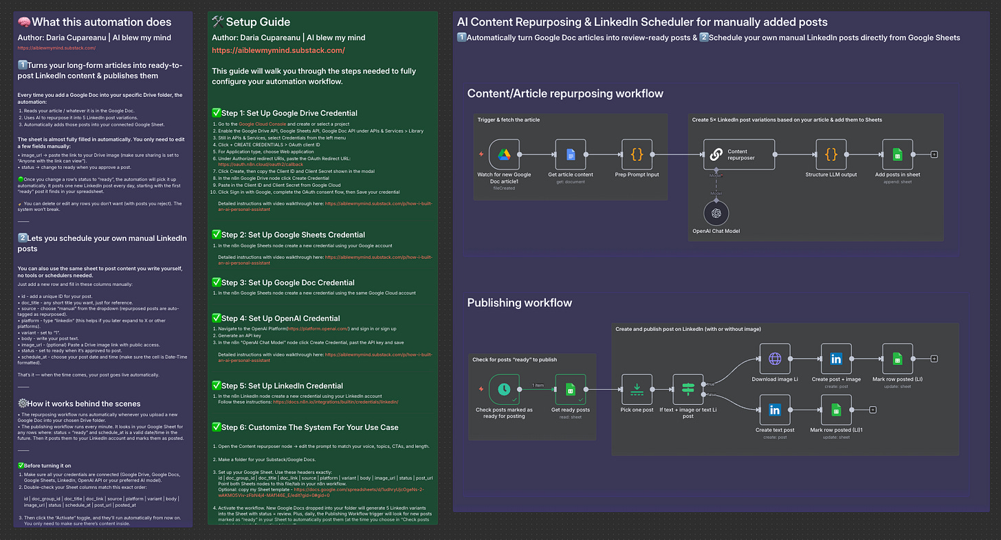 A repurposing workflow that turns my Substack articles into ready-to-post LinkedIn drafts I only need to review.