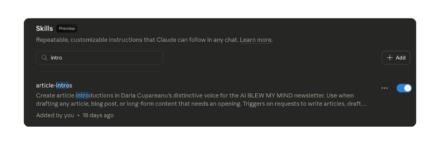 Why? Because for me, the intro is one of the most important parts of any article. After I built that skill, the improvement in how fast Claude polishes my intro drafts was night and day.