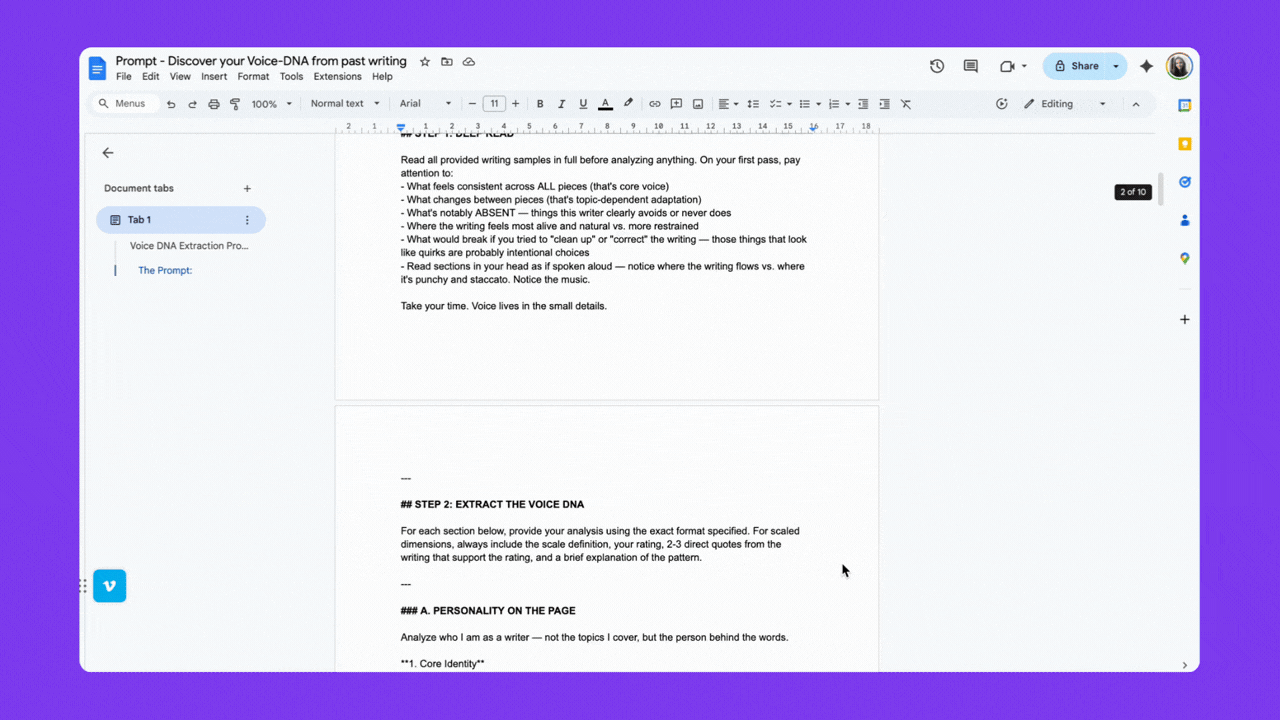2. Analyze your writing and extract the Voice DNA