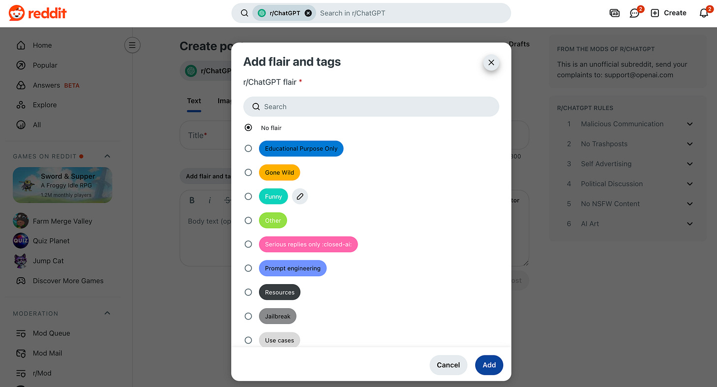 Or use subreddit flairs and tags. Flairs are useful because they reflect how the community labels and groups posts. They usually appear next to post titles and also show up in the Create Post form.