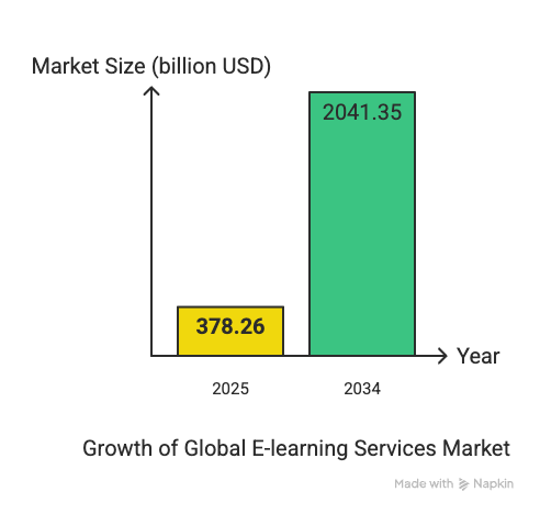 The global E-learning services market is estimated at $378 billion this year. By 2034, it’s projected to hit $2 trillion.
