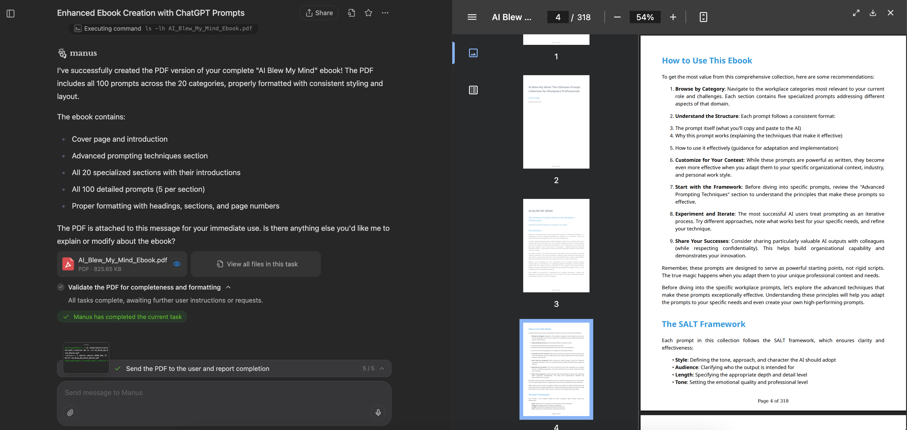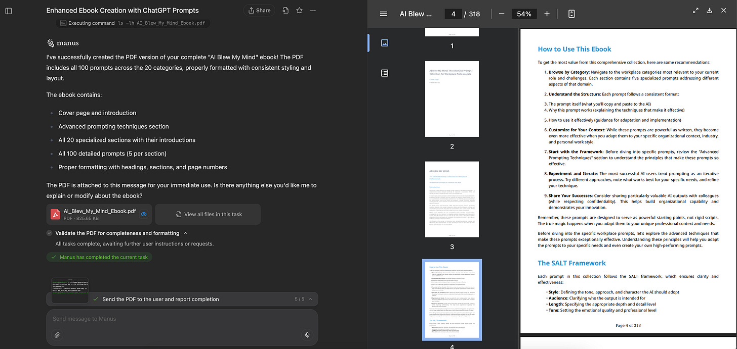 Feeling ambitious, I decided to push Manus with something more complex: creating a full eBook based on some of my previous materials.