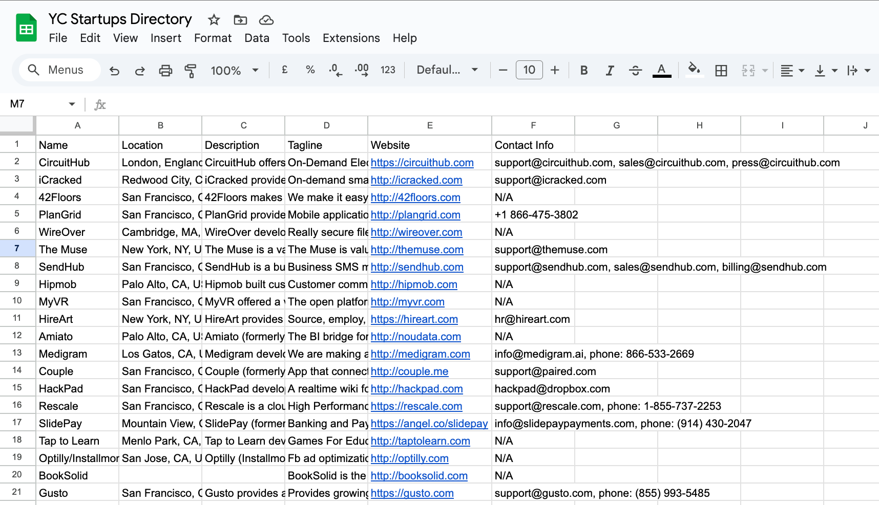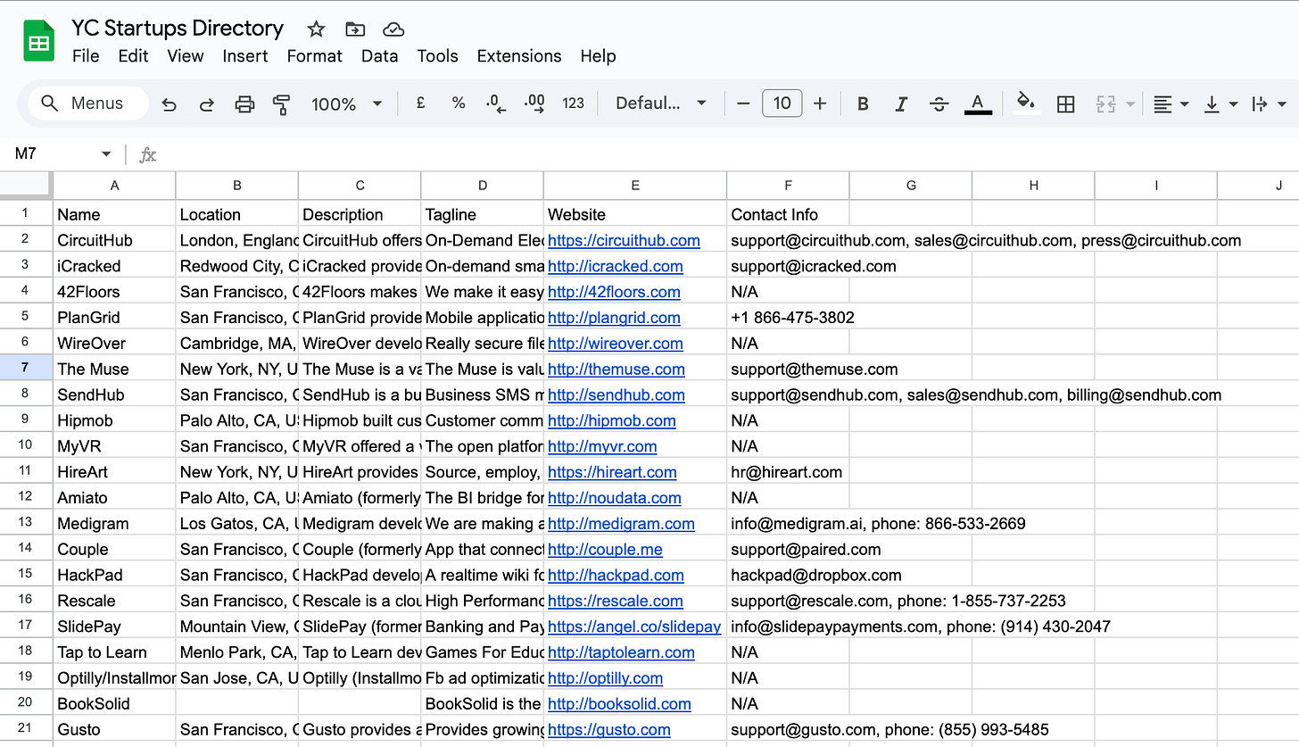 Here’s what happened: The agent navigated the site, clicked through company pages, extracted the fields, created a sheet in my Drive, and even appended contact info from company websites. The sheet was raw but accurate enough to work with.