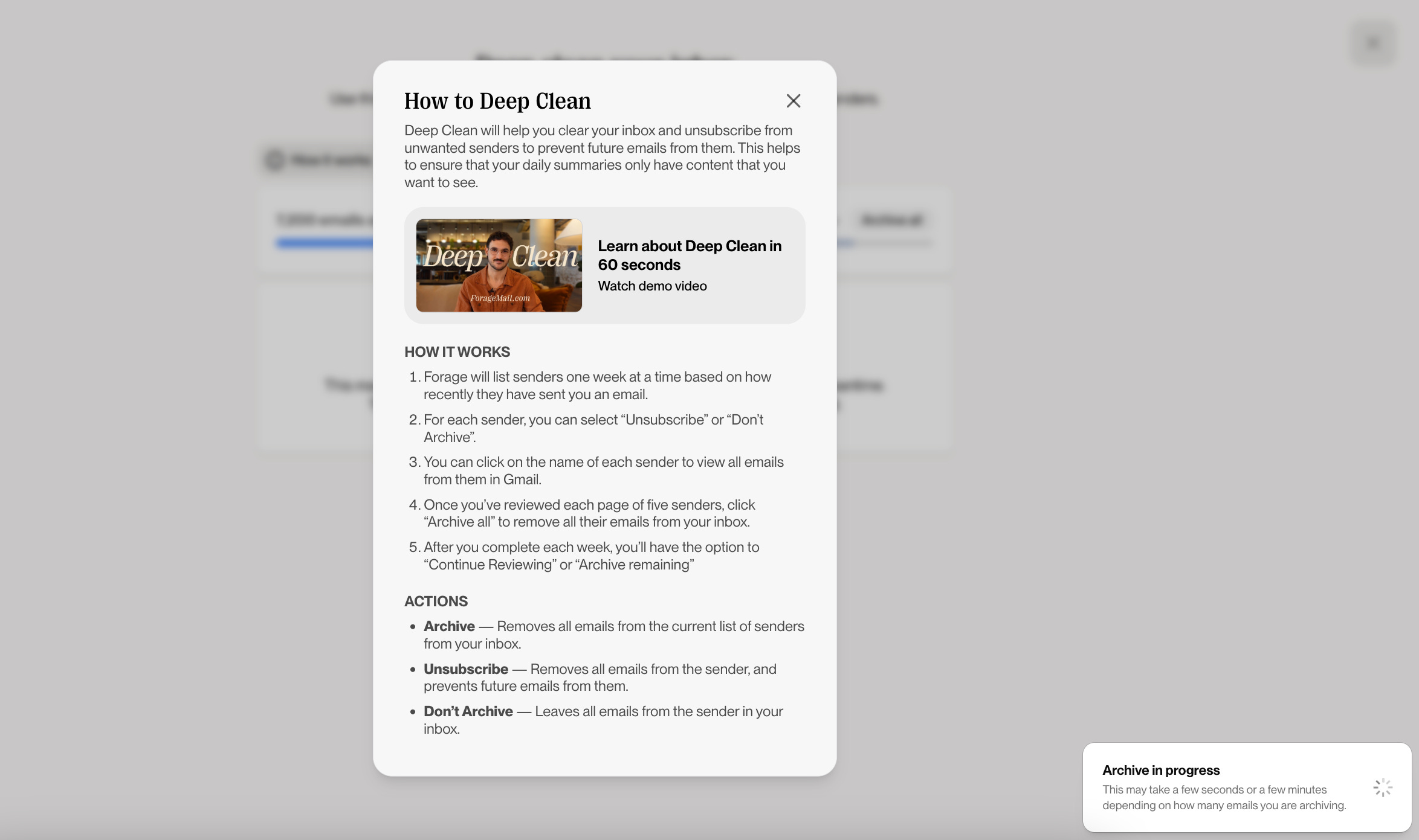 The "Deep Clean" could use more reassurance. Clicking that button on years of old emails felt a bit scary. A little more "how it works" text or a clearer explanation beforehand would have eased my initial fear.