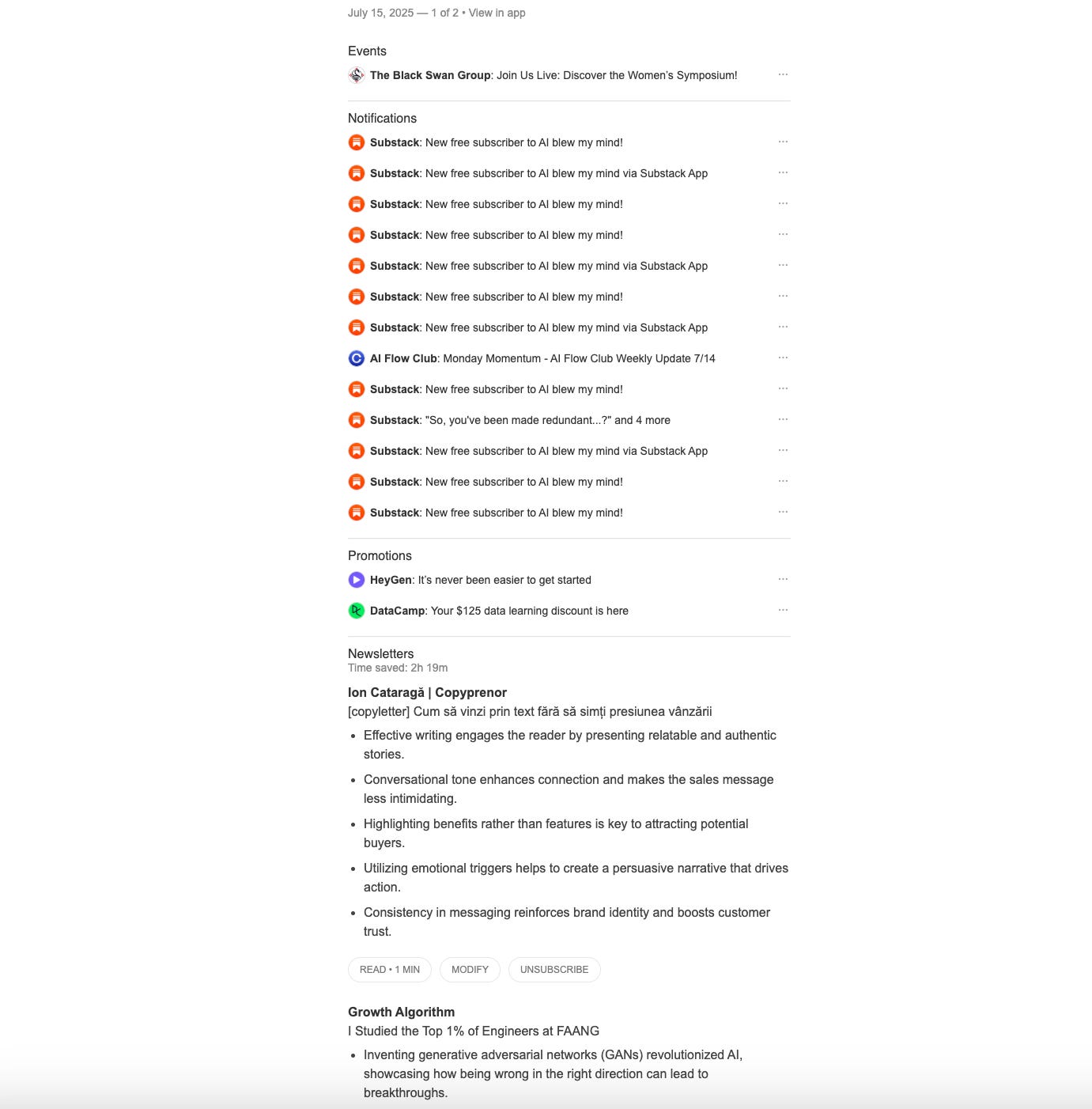 I’m more intentional with my reading time. Because my Daily Forage summarizes all my newsletters, I can quickly scan the key points and decide which articles I'm interested in reading in full. This is a much better use of my time than just randomly opening a few emails.